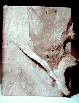 Skin of unknown origin, endsheets of Amatyl bark paper