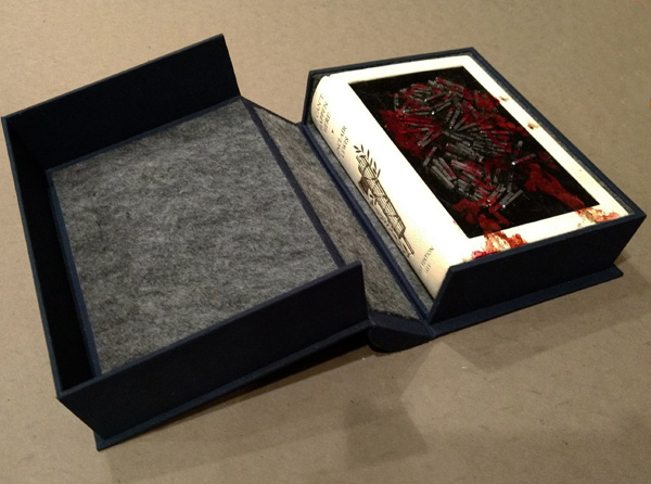 The above work began a series of Minsky bindings on this title, each on a copy of the first edition. The spine design is the same, and the cover concept, but the ararngement of type, blood, paint and background varies.