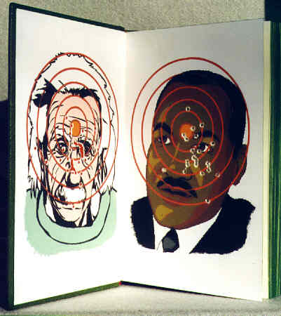 Bound in green Nigerian Goatskin, with quotes from the book stamped in 23K gold. Endpapers are Rives BFK, printed on an Epson Stylus 1500 inkjet, and shot at 50 yards with a Ruger 10/22 semiautomatic rifle. 9 1/2" x 6 1/4".