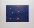 Blue calf, recessed 6" x 9" painted panel, lacquered acrylic on Rives BFK.