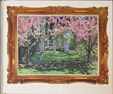 Red Nigerian goatskin, recessed 6" x 9" panel painted by Minsky lacquered acrylic on Rives BFK.