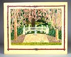 Black Chieftain goatskin, recessed pictorial inlay of goat and vellum, blind tooled, recessed panel with foil stamped title. Letterpress title page, dedication and colophon, linen endbands, chain ring embedded in head edge of back board. The scene is a geometric view of the East River, and the Triborough Bridge as seen from the mayor's residence. Commissioned by The Gracie Mansion Conservancy.